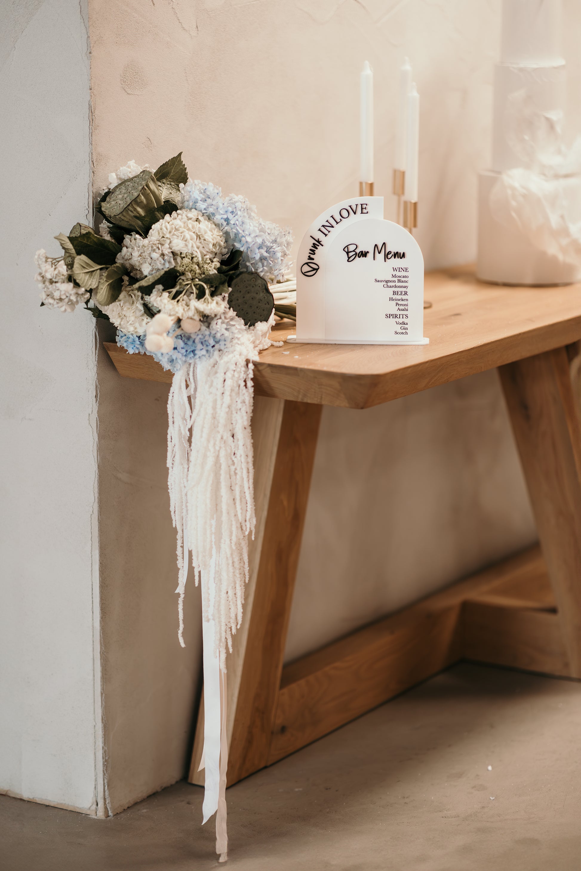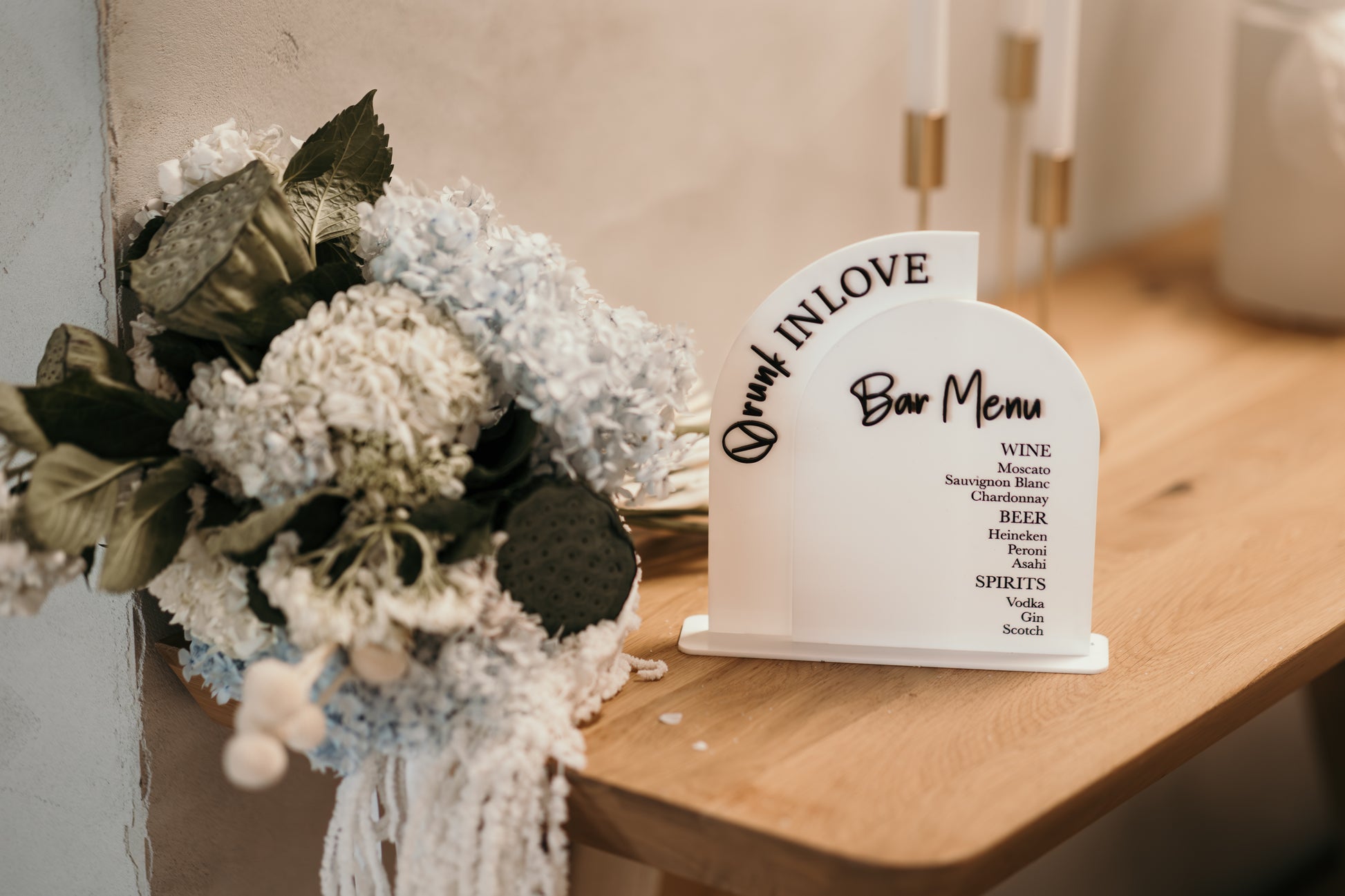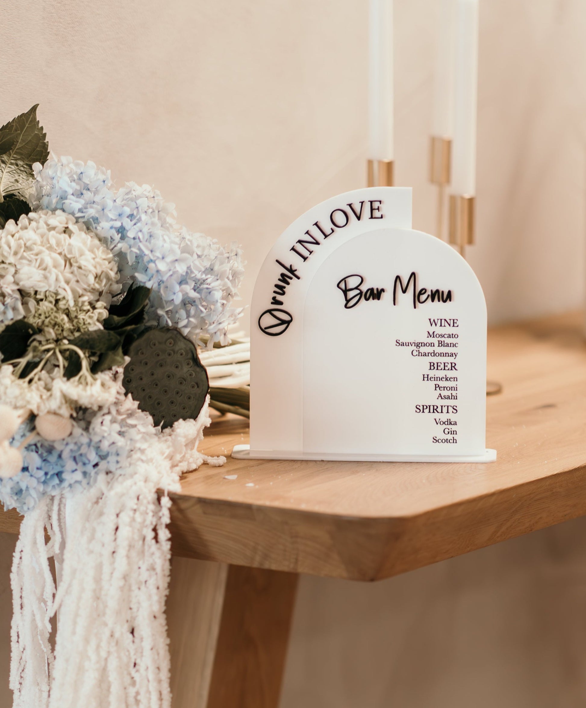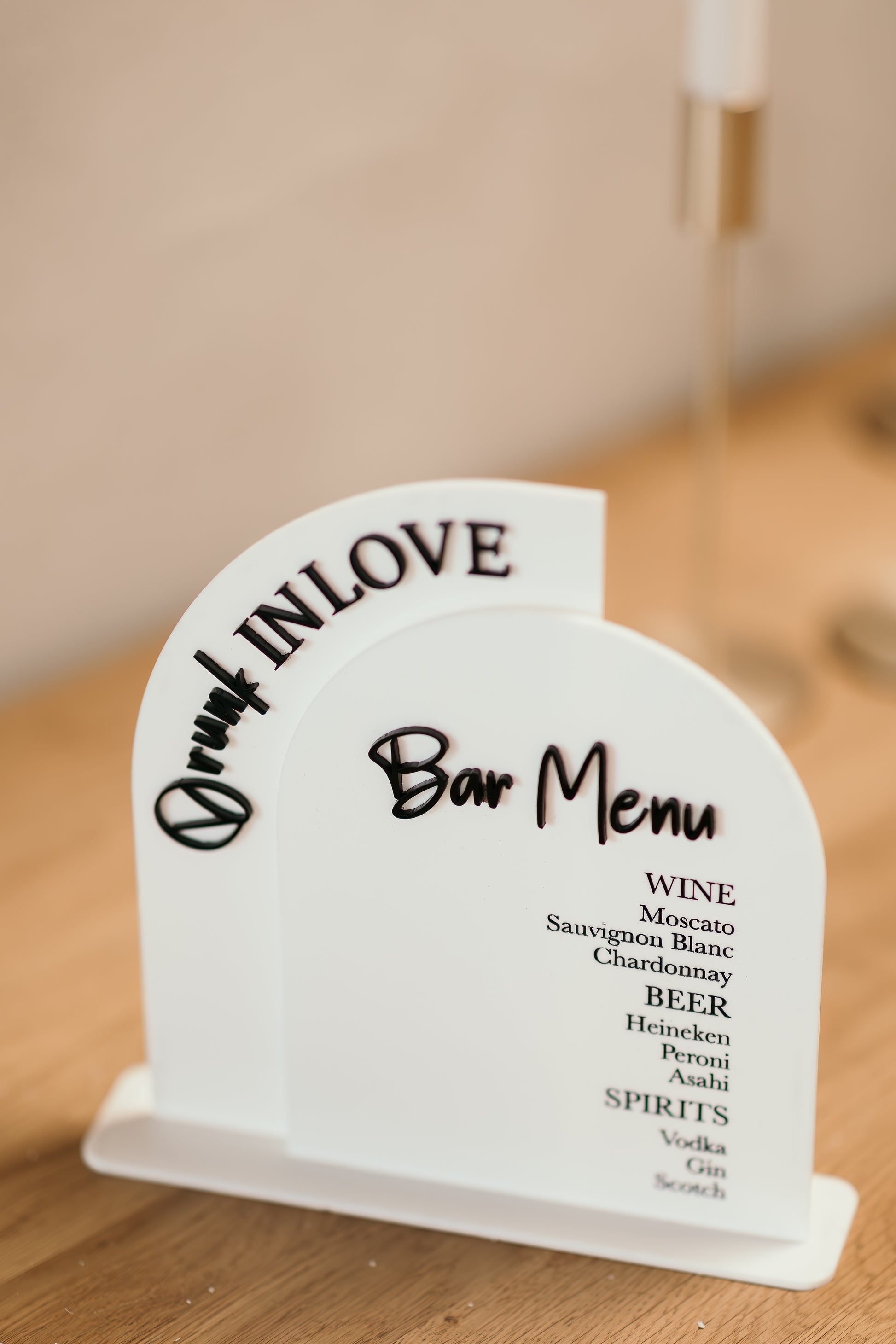 Each sign is carefully personalised to your specifications, allowing you to capture the essence of your event or brand. The contrasting black and white acrylic provides a modern, chic look that is versatile enough to complement any décor.